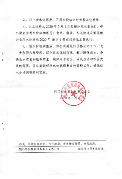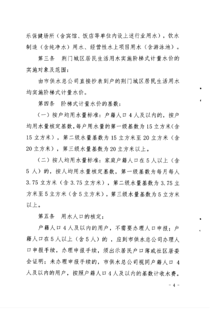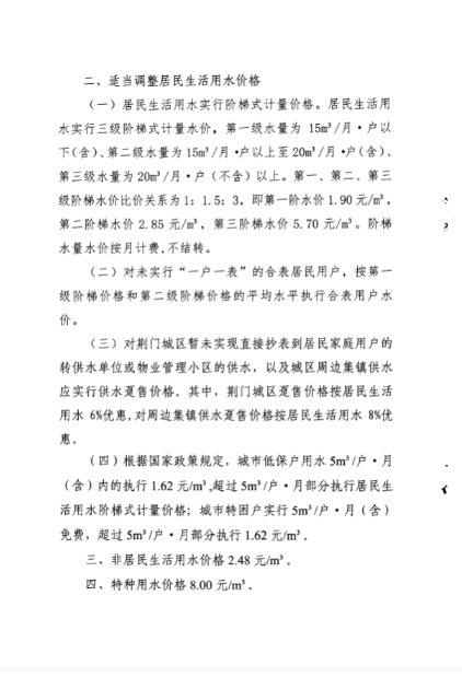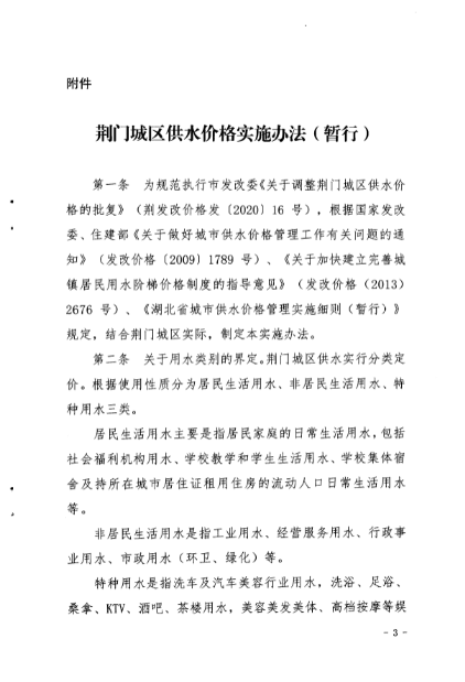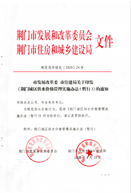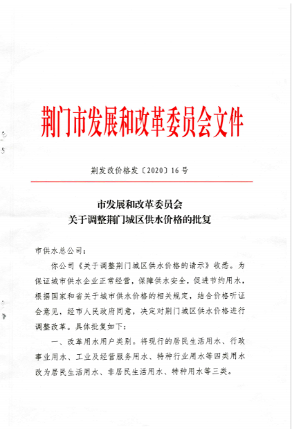 荊門城區(qū)供水價格批復和管理實施辦法